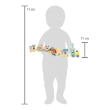 Børn kan placere 6 dyr på 6 vogne, træne farver og tal samt udvikle fantasien – dyrene kan tages ud og bruges i andre lege uden for toget. Legetøjet er ideelt til børn fra 2 år og understøtter finmotorik, koordineringsevner og kreativ historiefortælling.