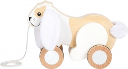 Den søde kanin lavet af kvalitets, solidt træ vil begejstre enhver lille én med sine bløde, knitrende ører og hale. Understøtter motoriske færdigheder og opmuntrer børn til at kravle og gå med en snor, der er let at trække. De gummibelagte hjul sikrer en glat og stille kørsel.