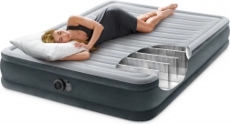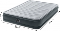 Leder du efter en komfortabel og holdbar løsning til overnatning for gæster eller på rejser? Denne dobbelte oppustelige seng fra INTEK giver høj sovekomfort takket være den bløde velouroverflade, forhøjet højde og jævn vægtfordeling. Den integrerede elektriske pumpe sørger for hurtig oppustning og udluftning på få minutter.