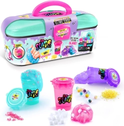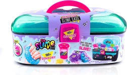 So Slime sjov kuffert lader dig skabe unikke, farverige slimes. Bland dem efter din smag, og tilføj pynt for maksimal sjov.