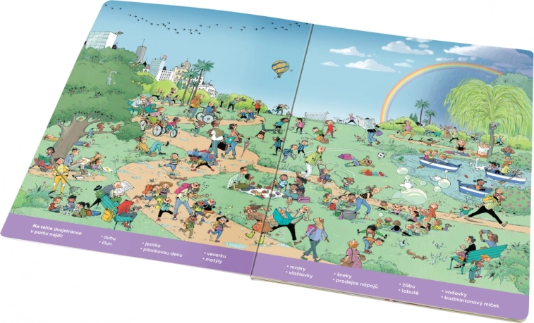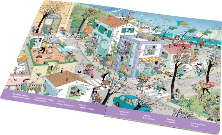 Lær det oms skiftelige vejr at kende gennem lange timer med læsning og opdagelse. Bogen er fyldt med detaljerede, farverige illustrationer, der indbyder til at finde nye og sjove historier og figurer. Oplev fortællinger med lykkelige slutninger og uventede plot. Hver side byder på nye eventyr, som du kun finder i dette smukke storformat-leporello.