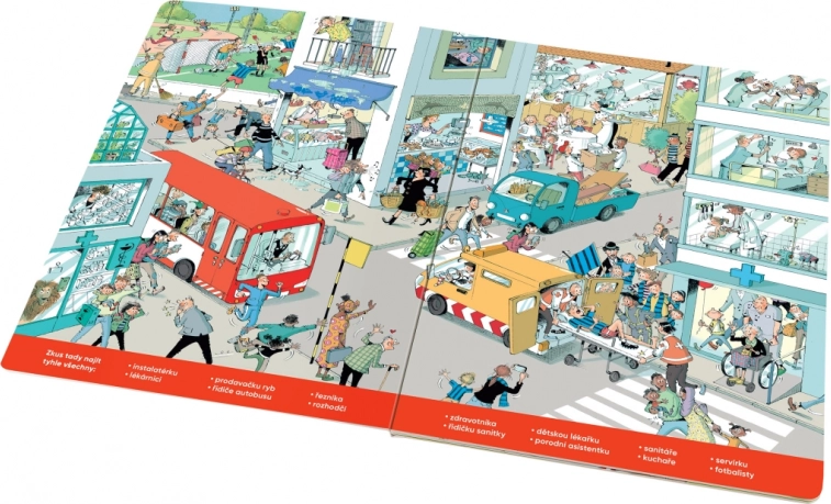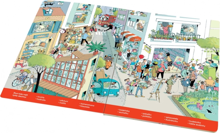 Hver side er fuld af detaljerede farverige illustrationer, som både børn og voksne kan udforske. Du opdager ikke kun almindelige håndværk, men også de mindre typiske. Se, hvilke jobs mennesker udfører, og hvor spændende det kan være.