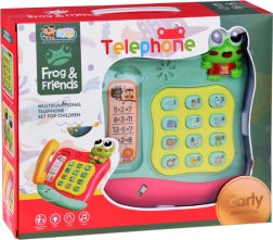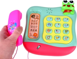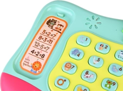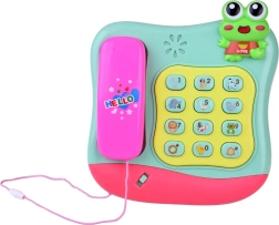 Se denne farverige musiktelefon til børn, som byder på masser af sjov og lærende funktioner. Hver knap på telefonen afspiller ikke blot forskellige melodier og lyde, men er også markeret med billeder af dyr og tal på engelsk. Når røret løftes, lyder en ringetone med en velkomstmelodi, mens der ved pålægning høres den karakteristiske lyd af et rørlæg.