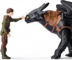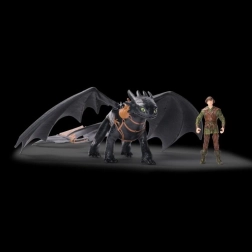 Oplev det ikoniske makkerpar fra filmen Sådan træner du din drage. Tandløs (ca. 32 cm) og Hikke (ca. 8 cm) bliver levende takket være trofaste detaljer, bevægelige led og vinger med realistisk overflade for en endnu bedre sanseoplevelse. Med de solide tapper i sadlen kan Hikke nemt sættes på dragens ryg og genskabe yndlingsscener eller finde på nye missioner.