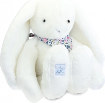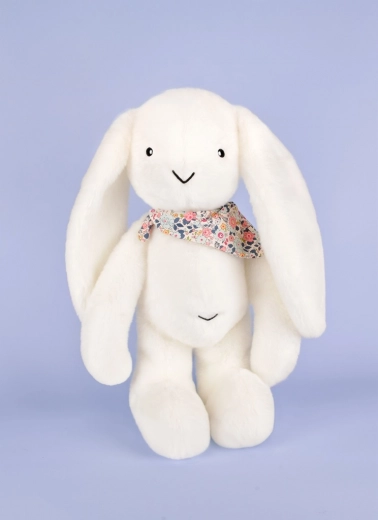 Blød og krammevenlig kanin i størrelsen 50 cm, som giver børn fra fødslen venskab og tryghed. Udstyret med et blomsteret tørklæde, bringer den glæde ved hvert kram.