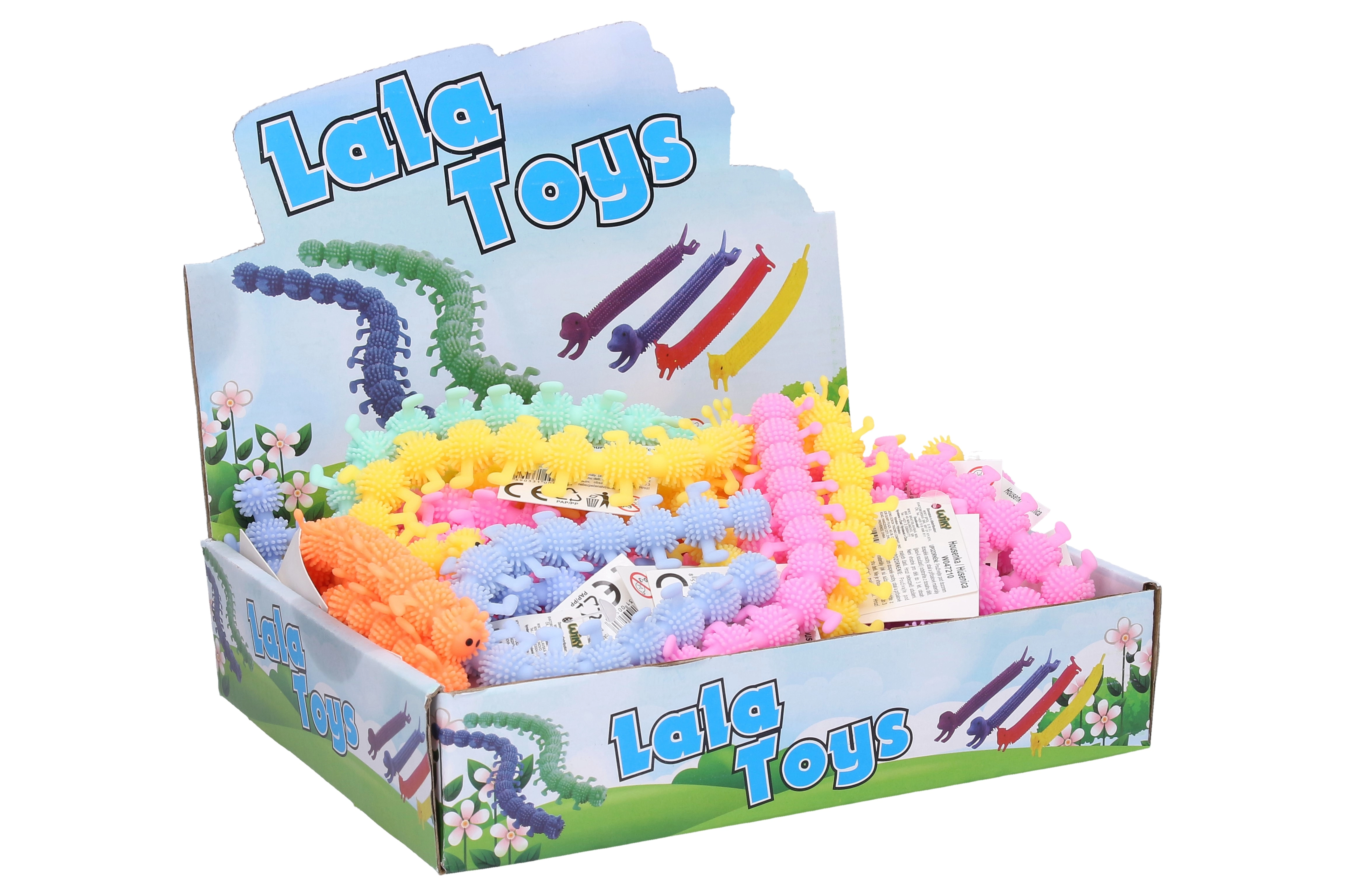 Originalt larve-legetøj i størrelsen 24 cm tilbyder sjov for alle aldersgrupper. Fås i forskellige farvevarianter.