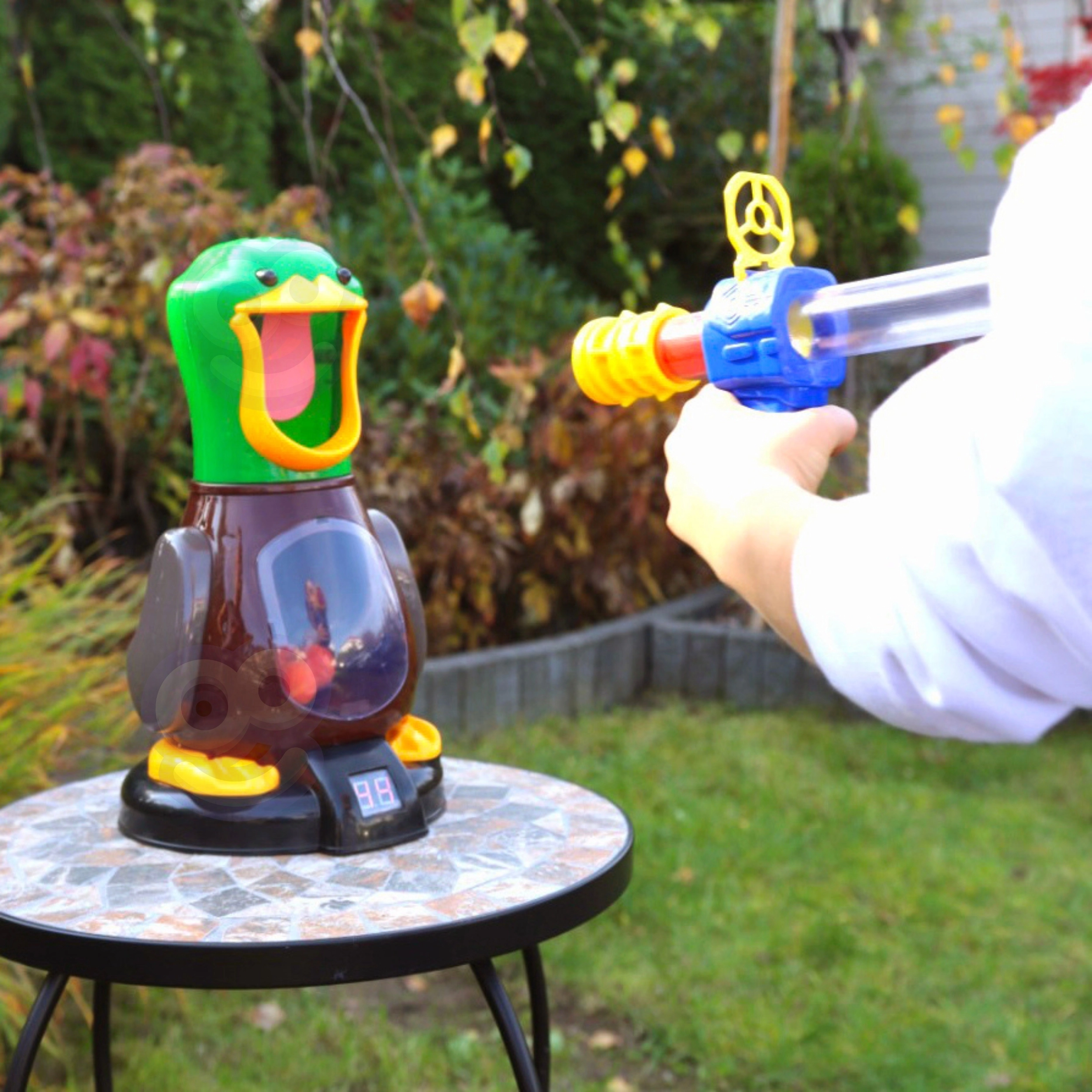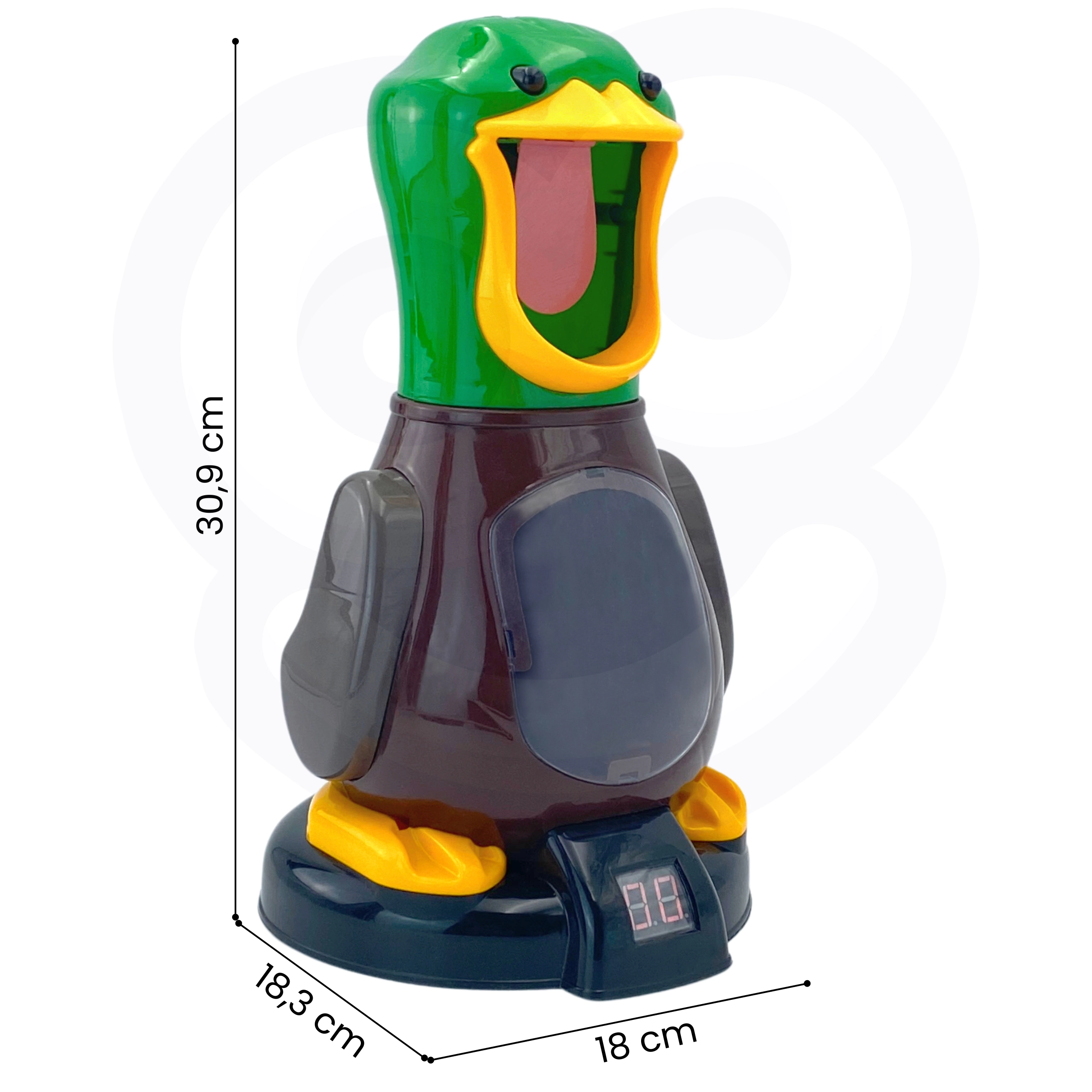 Træd ind i færdighedsspillets verden med legetøjet Sulten And fra WOOPIE, som bringer sjov for både børn og voksne. En fantastisk måde at udvikle koncentration, præcision og koordination på med en and, der tæller point for hvert vellykket træf ved hjælp af en specialpistol.