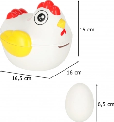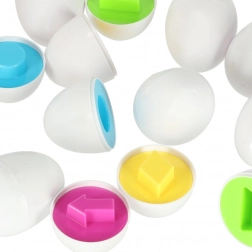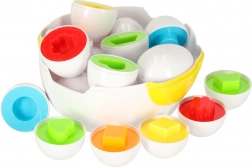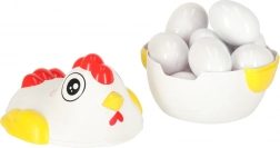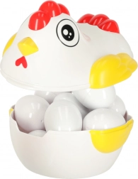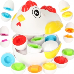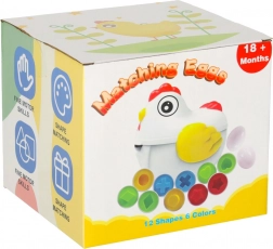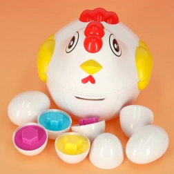 Sjov høne med en overraskelse! Dette pædagogiske legetøj indeholder 12 æg, som skal samles efter form. Hvert æg gemmer et stykke, der kun passer i den rigtige halvdel.