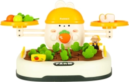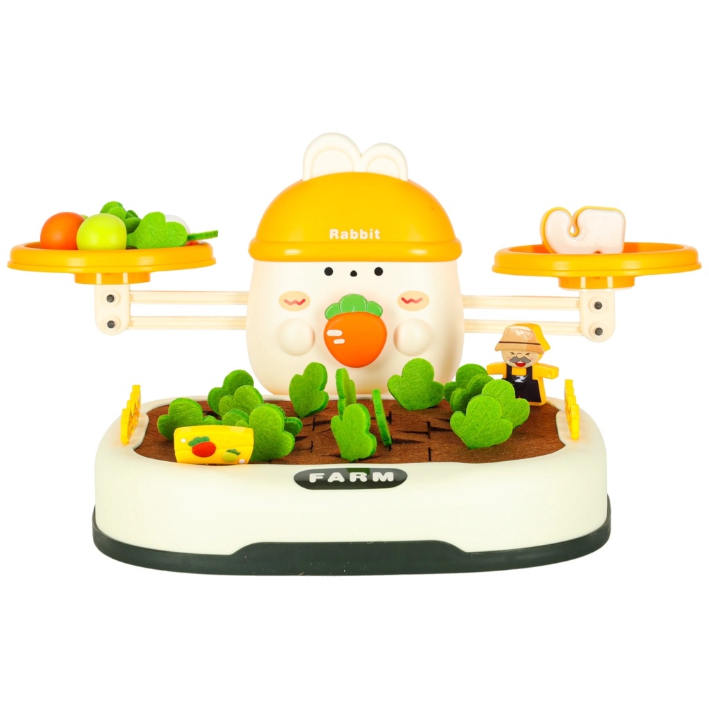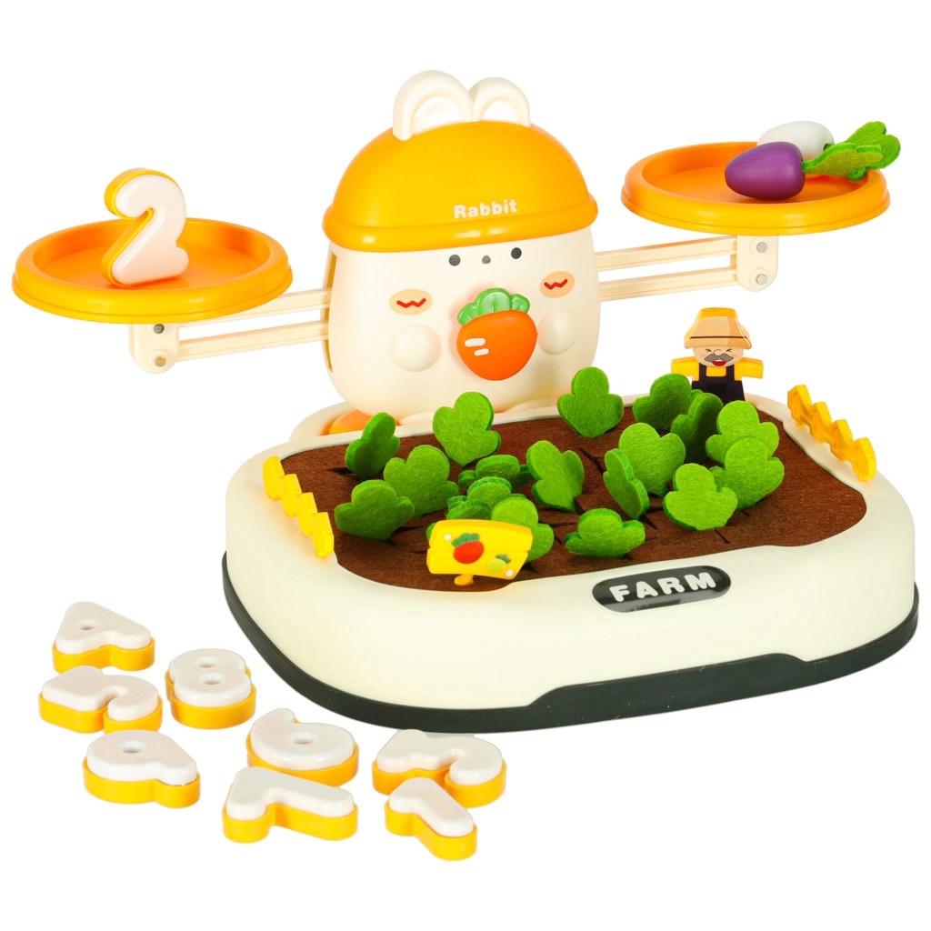 Den øverste del af sættet styres af en yndig kanin – den holder øje med balancen. Børn kan stable gulerødder og andre genstande for at opretholde eller bevidst forstyrre balancen og dermed lære fysikkens grundprincipper. Indeholder også særlige tal med tilsvarende vægte, som lærer børn at sammenligne vægt og forstå talværdier.