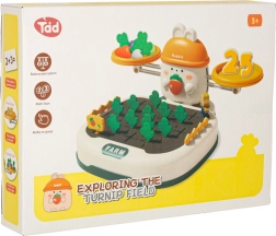 Den specialdesignede plade med huller lader børn øve præcision i bevægelserne – at sætte og trække gulerødder op hjælper med at udvikle motoriske færdigheder og introducerer et element af sund konkurrence i form af legen “hvem høster hurtigst”.