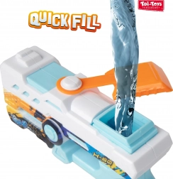 Denne lette og holdbare vandpistol i plast er et fremragende valg til både mindre og større børn. Den ligger godt i en barnehånd, fyldes hurtigt og sprøjter pålideligt til forfriskende vandkampe på varme dage.