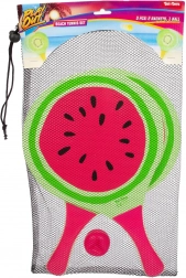 Spil hvor som helst – på stranden, i haven eller på legepladsen. De sjove motiver af melon, kiwi og appelsin øger synligheden under spil og skaber en glad sommerstemning. Sættet er perfekt til træning af reaktionsevne, hånd–øje-koordination og bløde slag.