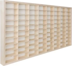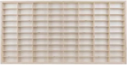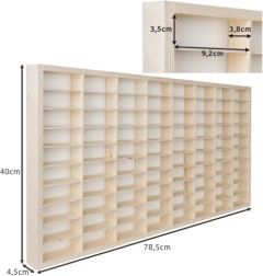 Takket være de aftagelige skillevægge i 3 mm krydsfiner kan du tilpasse inddelingen præcist efter samlingens størrelse. Hylden kan hænges på væggen (pakken indeholder ophæng og monteringssæt) eller stilles på en kommode eller et bord. Det naturlige fyrretræslook fuldender desuden fint indretningen i børneværelset.