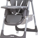 Højstolen er udstyret med en 5-punkts sikkerhedssele med bløde skulderpuder for dit barns sikkerhed og komfort. Den dobbelte madbakke gør vedligeholdelsen lettere, da den øverste bakke nemt kan tages af for rengøring. Den primære bakke er udstyret med en beskyttende T-stang og kan skubbes frem og tilbage i 4 positioner.