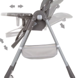 Sæde og armlæn er fuldt justerbare, hvilket sikrer barnet maksimal komfort under måltiderne.