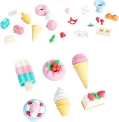 I dette attraktive sæt finder du viskelædere, der ligner is, småkager, desserter og muffins – hver af dem er omhyggeligt detaljeret og stråler i levende farver.