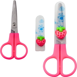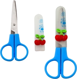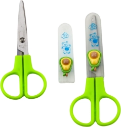 Denne saks er designet med fokus på sikkerhed og komfort – den har afrundede klinge-spidser og et beskyttelseskap, som ikke kun beskytter klingen, men også har en dekorativ funktion. Det to-håndede design gør den behagelig at bruge for både højre- og venstrehåndede børn. Saksen er beregnet til at klippe papir, karton og tynde dekorative materialer, hvilket gør den til et ideelt værktøj til læring og leg.