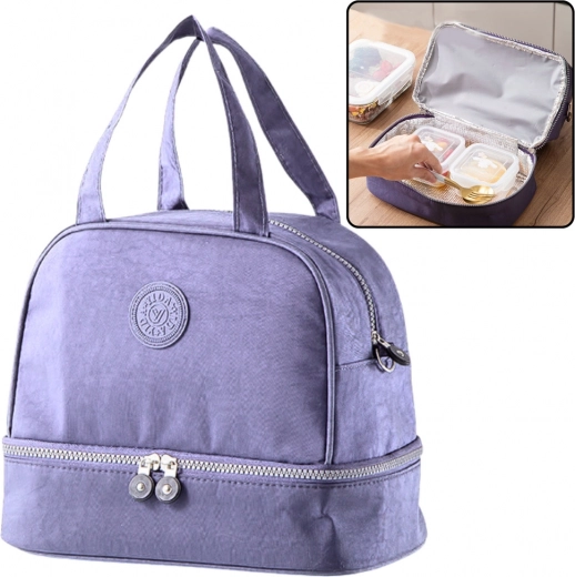 Takket være den to-lags konstruktion og den isolerede termiske foring holder tasken effektivt temperaturen på de opbevarede produkter, uanset om det er varme retter eller kolde drikke og snacks. Det nederste hovedrum er rummeligt og rummer nemt madkasser, frugt, drikkevarer, flasker eller termokrus. Den øverste lomme er beregnet til småting som barer, yoghurter, servietter eller bestik, hvilket hjælper med at holde indholdet organiseret og let tilgængeligt.