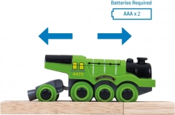 Dette elektriske lokomotiv, inspireret af den legendariske britiske damplokomotivsklassiker, er designet til problemfri kørsel på træbaner. Det tændes og slukkes med én enkelt knap skjult i skorstenen, og takket være den stærke motor kan det trække flere vogne op ad bakke. Realistisk lyd og det grønne design vil begejstre små togentusiaster.