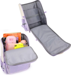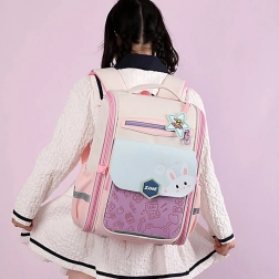 Den pastelfarvede skoletaske med kaninmotiv er det perfekte tilbehør til børn, der værdsætter funktionalitet og unikt design. Tasken fanger straks opmærksomheden med sine lyserøde-lilla farver og fine detaljer.