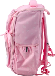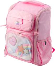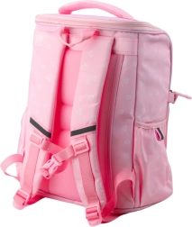 Rygsækken er udstyret med ét stort hovedrum, som gør det nemt at opbevare bøger, hæfter og større genstande. Fronten har tre ekstra lommer til penalhus, madpakke eller andet tilbehør. Siderne har to elastiske lommer til flaske eller drikkedunk.