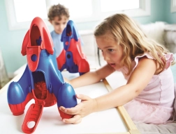 Start 3-2-1… og vi flyver! Denne robuste raket fra GREEN TOYS er ideel til små opdagelsesrejsende, der elsker historier og rolleleg. Med aftagelig cockpit, store nedfældelige døre, der fungerer som trappe, og to detaljerede astronauter udvikler børn nemt både fantasi og finmotorik.