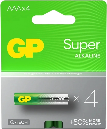 Alkaliske batterier GP Super LR03/AAA tilbyder forbedret levetid og beskyttelse mod lækage, alt sammen i en miljøvenlig emballage.