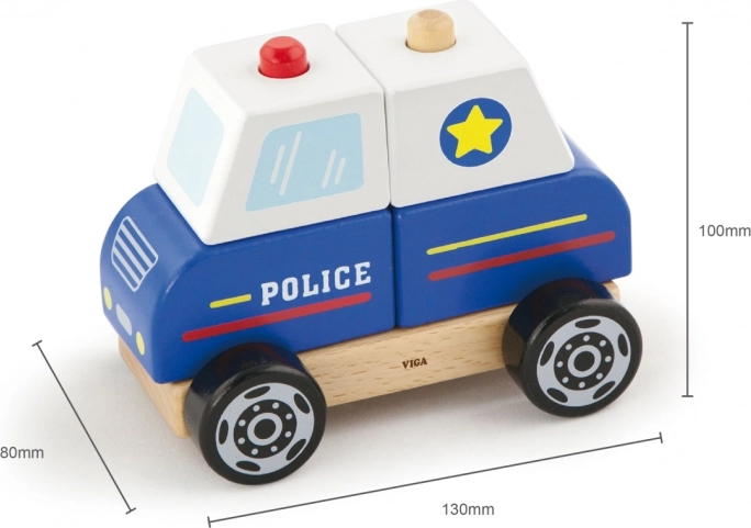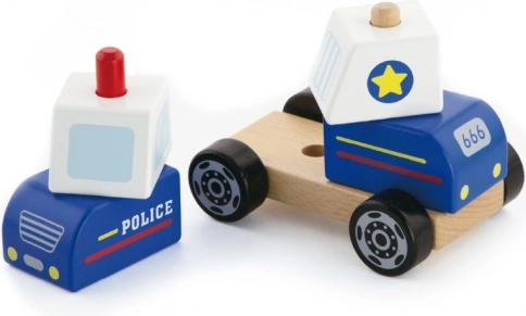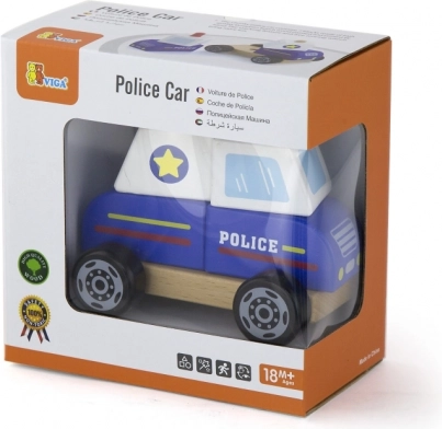 Viga træpuslespil Politibil tilbyder flere måder at lege på: børn kan samle bilen af dele, træne greb og koordination og derefter køre rundt i hjemmet på jagt efter skurke. Den robuste træudførelse, glatte kanter og mættede farver sørger for sikker og langvarig underholdning.