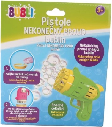 Boblepistolen er ideel til børn, der elsker at lege udenfor i varmt sommervejr. Ét tryk er nok til at skabe smukke og uendelige strømme af bobler, som vil begejstre ethvert barn.