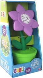 Oplev sjov med en boblemaskine formet som en lilla blomst, der skaber et stort antal bobler på én gang og er ideel til børnefester eller havefester.