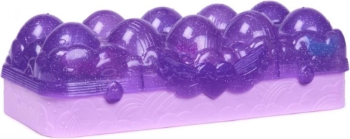 Den robuste lilla karton med glimmer fungerer til klækning, opbevaring og udstilling af samlingen. Ideel til leg hjemme og på farten.