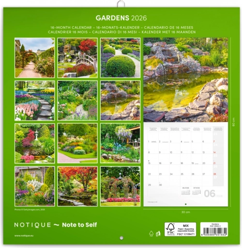 Gør dit hjem lysere med en noteskalender, der byder på smukke fotografier af fremragende haver og praktiske funktioner for hele året 2026.