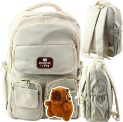 Udseendet af rygsækken suppleres med dekorative badges med kapybara-motiver og en plys nøglevedhæng i form af en kapybara, som barnet kan fastgøre efter eget ønske og personliggøre udseendet af sin rygsæk.