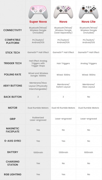 GameSir Super Nova kombinerer førsteklasses ergonomi og avanceret teknologi for maksimal kontrol i hvert spil. Hall Effect-sticks og triggere giver jævn bevægelse, høj driftmodstand og præcis respons. Takket være 1000 Hz polling-rate (kabel og 2,4G-dongle) reagerer controlleren næsten øjeblikkeligt, så den ikke svigter dig selv i konkurrencespil.