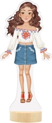 Opdag den kreative verden af påklædning med denne magnetdukke, som tilbyder 30 magnetiske dele til at kombinere tøj, sko og accessories. Takket være den træbase står dukken stabilt, og børn kan nemt skabe utallige modekreationer hjemme og på farten.
