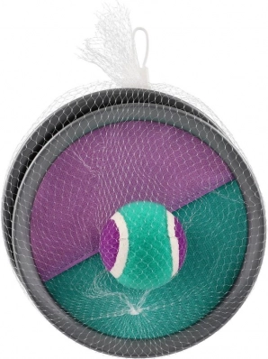Catch ball-spil med velcro 19 cm – grøn-lilla, i net