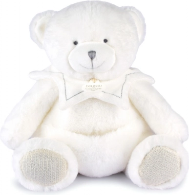 Bamsen er udstyret med et tæppe, som nemt kan gemmes i dens mave, hvilket er meget praktisk under rejser eller opbevaring. Doudou er dekoreret med fin broderi og satinbånd med franske tekster, som giver ekstra blødhed til hver krammestund.