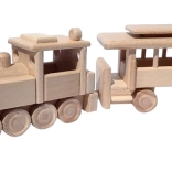 Toget er fremstillet af massivt bøg og behandlet kun med voks og polering. Det bevarer træets autentiske åretegning, er skånsomt og sikkert for børnehænder.