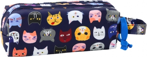 Et æstetisk og funktionelt penal med motiv af farvede katteansigter. Imponerer ikke kun med sit udseende, men også med sin praktiske anvendelighed.
