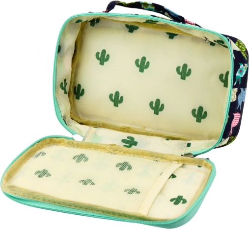 Moderne og praktisk penalhus skabt til daglig brug i skolen. Et glimrende tilbehør, der kombinerer komfort med æstetik og passer i enhver rygsæk. Det er udstyret med et rummeligt hovedrum til nem opbevaring af nødvendige skoleartikler som blyanter, penne, linealer, blyantspidsere eller viskelædere. Den indvendige lille lomme gør det muligt at adskille små genstande, hvilket sikrer endnu bedre orden.