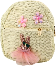 Rygsækken er udstyret med et hovedrum med lynlås, ideelt til små legetøj, accessories eller snacks. En ekstra lomme på forsiden giver hurtig adgang til småting. Rygsækken er lavet af let materiale med broderet struktur, som giver den et elegant og delikat udtryk.
