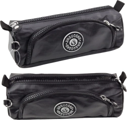 Skolepenalhuset har to separate lommer med lynlås, som gør det nemt at organisere blyanter, kuglepenne, viskelædere, blyantspidsere og andre småting. Den forreste lomme giver hurtig adgang til de oftest brugte redskaber. Et praktisk tilbehør i form af et vedhæng med karabinhage gør det muligt at fastgøre penalhuset til en rygsæk, taske eller hænge det et let tilgængeligt sted. Penalhuset er lavet af et robust materiale, der er nemt at vedligeholde. Fås i grøn, sort, pink og lilla. Angiv venligst farve ved køb, ellers sendes en tilfældig farve.