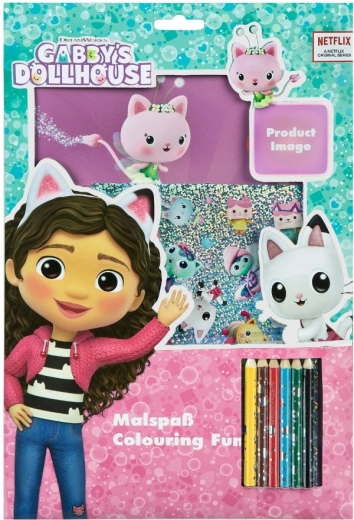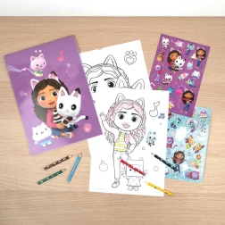 Dette kreative sæt giver barnet mulighed for at dykke ned i Gabby's Dollhouse-universet og udvikle sin kreativitet. 30 maleblade med yndlingsscener og -figurer sætter gang i fantasien. Pakken indeholder også seks farvede voksfarver og et ark klistermærker, som gør det muligt for børn at give deres værker et personligt præg.