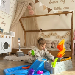 Transportabelt sandkasse i form af et slot fra mærket WOOPIE tilbyder perfekt underholdning for børn. Forvandl din gård, terrasse eller endda stuen til et magisk miljø fyldt med kreativitet og uforglemmelige øjeblikke.