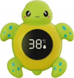 Sørg for, at hvert bad til dit barn er sikkert og behageligt med vores søde skildpaddeformede termometer. Det måler både vand- og rumtemperatur og udsender en sjov lyd, der letter temperaturmålingen.