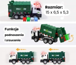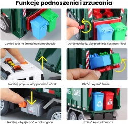 Realistiske funktioner og uddannelsestilbehør gør denne skraldebil ikke kun til en favorit legetøj, men også et nyttigt værktøj til undervisning af miljømæssige vaner i det daglige liv.