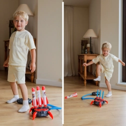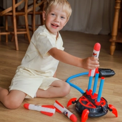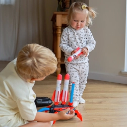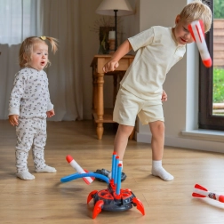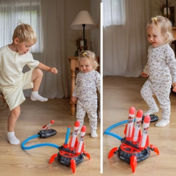 Denne multi-mål skumraket-affyringsstation giver børn fra 6 år masser af bevægelse, glæde og nysgerrig læring. Træd blot på pumpen, og de bløde skumraketter skyder sikkert til vejrs. Den stabile base rummer flere raketter ad gangen og sikrer let og hurtig affyring.