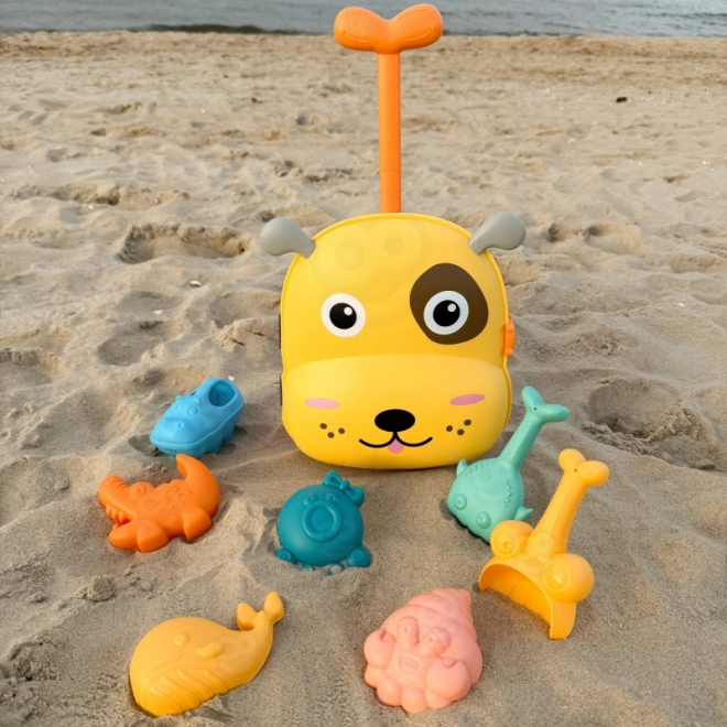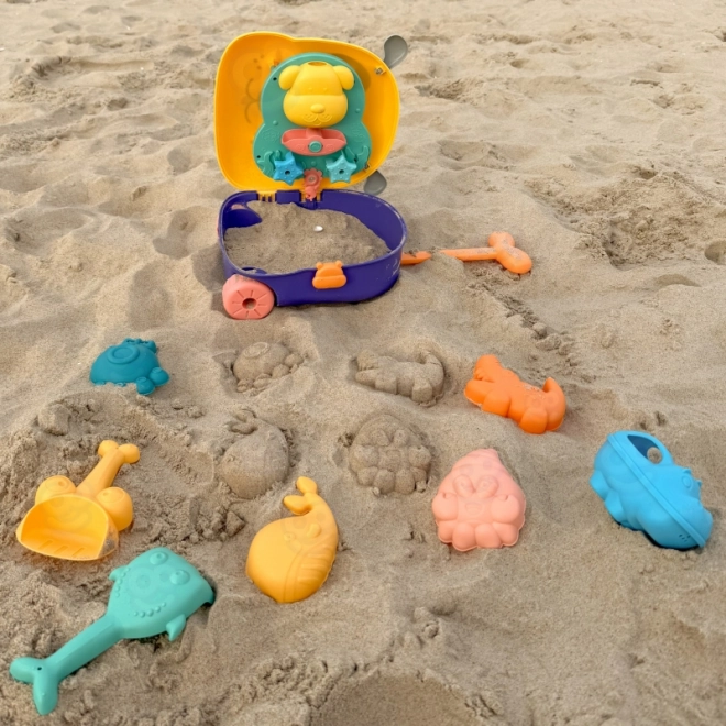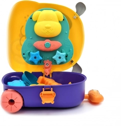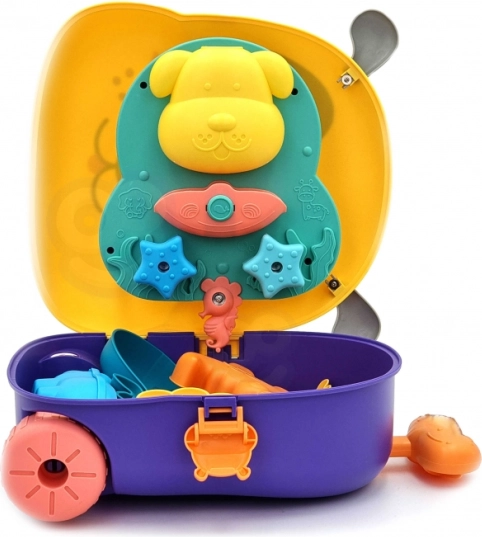 Denne bærbare kuffert bliver til en lille vand-sandkasse, som underholder børn derhjemme, i haven og på stranden. Takket være det rige tilbehør kan børn skabe i sandet og samtidig udforske vand-effekter. Legetøjet fremmer finmotorik, kreativitet og sansemæssig opfattelse.