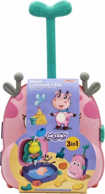 Praktisk 3-i-1 vand-sandkasse i kuffertform til leg derhjemme og på farten. Let at bære, nem at samle og alsidig brug med vand og sand garanterer timevis af leg og udvikling af barnets fantasi.