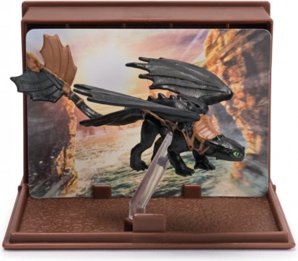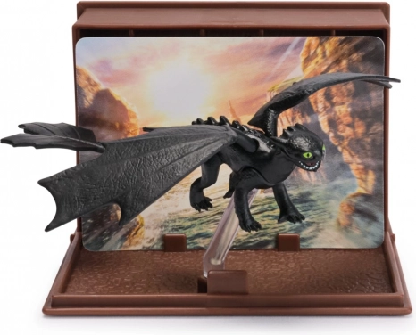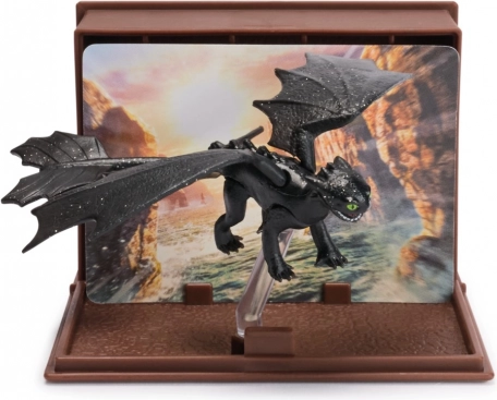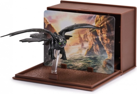 Træd ind i universet SÅDAN TRÆNER DU DIN DRAGE med en lommevenlig samling af drager, som du kan samle, udstille og samle på. Hver drage har gennemarbejdede detaljer, vinger i flyvepose og “svæver” foran den malede baggrund takket være den klare stander. Bog-boksen lukkes til rejsen og bliver ved åbning en scene til øjeblikkelig udstilling.
